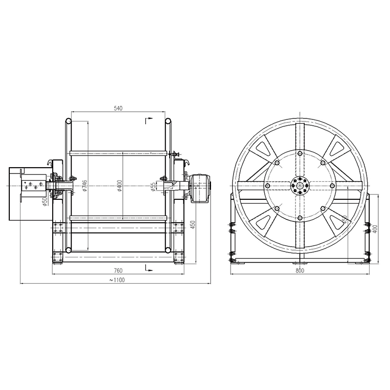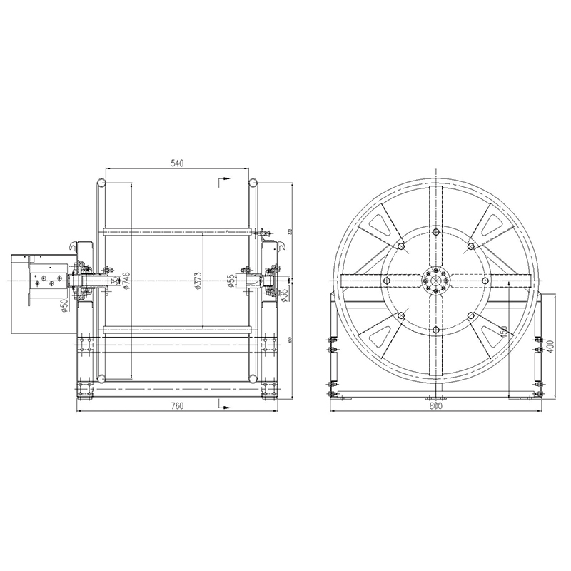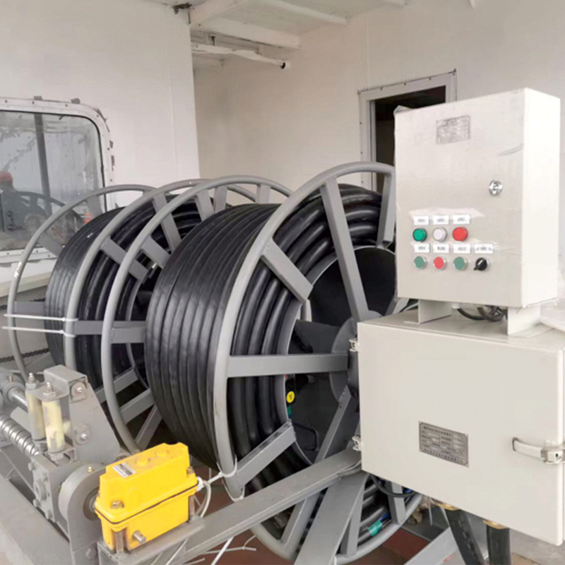 Электрическая кабельная катушка серии CDJ оснащена двигателем, который передает мощность на угловой редуктор, увеличивая крутящий момент. Возникающий крутящий момент заставляет кабельную катушку сматывать и разматывать береговой кабель. Реверсивное вращение двигателя приводит к разматыванию кабеля.